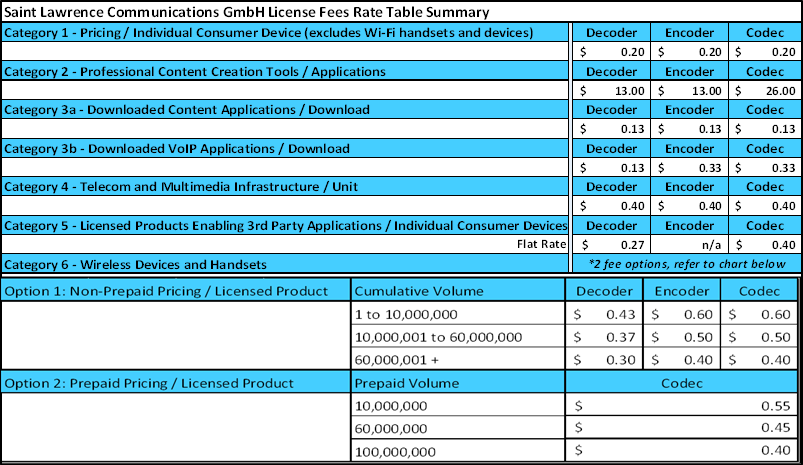 Our portfolio relates to wideband voice coding technology used in modern wireless networks, also known as high definition (HD) voice. With its portfolio of over 225 issued and pending patents with worldwide coverage, Saint Lawrence Communications’ innovations provide key building blocks for HD voice codecs. Coverage in all major jurisdictions (US, Europe, Japan, Canada, Korea…..). Key patents first expire in 2019.